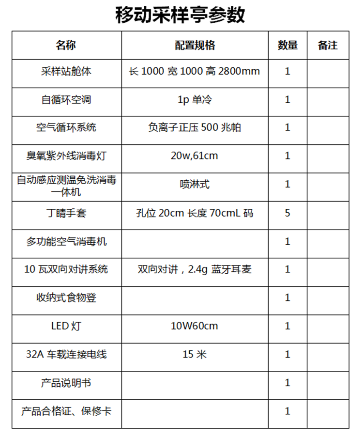 產(chǎn)品特點(diǎn):可根據(jù)具體使用場(chǎng)所選擇合適的核酸采樣亭,根據(jù)使用人數(shù)可將采樣亭分為單人操作亭、雙人操作亭以及多人操作亭等,在人口密集的地方可選用雙人及以上的操作亭,而在人數(shù)較少的地方則可選用單人操作亭。此外,浩田選用的是正壓新風(fēng)換氣系統(tǒng),如使用紫外線、等離子作為殺菌消毒因子,使用HEPA高效濾網(wǎng)、活性炭濾網(wǎng)等凈化空氣中的飛沫、PM2.5、灰塵等污染物,甚至配備冷暖空調(diào),為艙內(nèi)調(diào)節(jié)適宜的溫度。