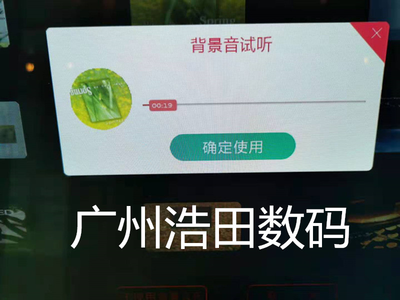 背景音樂選擇、試聽:點擊“背景音樂”按鈕,可進入背景音樂試聽和選擇的操作界面。