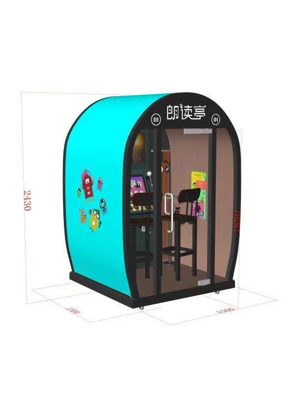 4. 朗讀亭圓頂版:尺寸相對于其他幾款,尺寸上更為小巧,高度僅為2.4m,有別于傳統朗讀亭的外觀,這款朗讀亭為圓頂的設計,占地面積更小。