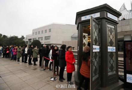 △在朗讀亭外等待錄制的讀者