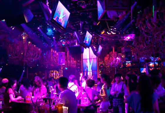 在南國的冬天空氣總是帶著一股蕭瑟冷,行人都縮在厚實的棉大衣后,酒吧的門口是個幽靜的處所,黑色落地窗讓人看不清里面,推開門,暖氣一下子侵滿身體,轉(zhuǎn)折的紅布毯過道直通負(fù)一樓,兩旁都是色彩鮮艷的宣傳單張和曖昧燈光,氣氛濃厚,讓顧客在踏入門店有一個緩沖地帶,增加顧客期待的感覺。