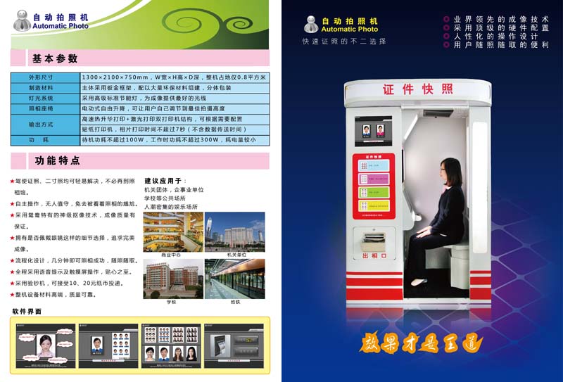 記者在一旁觀察到,有很多同學(xué)都會(huì)走進(jìn)去拍攝證件照,同學(xué)們拍攝結(jié)束后,只要再等15秒就可以取到自己美美的證件照。其中一位女同學(xué)告訴記者,這個(gè)機(jī)器是在一個(gè)月以前擺放在圖書(shū)館內(nèi)的,一直都有很多人會(huì)來(lái)拍攝證件照。“太方便了,不用我們?cè)谕饷媾軄?lái)跑去的找照相館了,而且這個(gè)機(jī)器照完之后還可以自己選擇是否滿意,真的很人性化。”張同學(xué)說(shuō),他要給這臺(tái)創(chuàng)意的照相機(jī)點(diǎn)贊。歡迎您來(lái)電,竭誠(chéng)為您服務(wù)400-030-2780