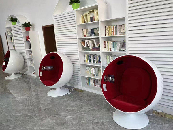 “休閑數(shù)字閱讀球型沙發(fā)”是我們憑借多年多媒體應(yīng)用平臺(tái)開(kāi)發(fā)和智慧圖書(shū)館服務(wù)經(jīng)驗(yàn)研發(fā)的一款舒適的閱讀產(chǎn)品。讀者可以通過(guò)智能數(shù)字閱讀終端,也可以聽(tīng)書(shū),聽(tīng)音樂(lè),也可以看視頻課件等,還可以通過(guò)藍(lán)牙播放手機(jī)音視頻。讓讀者在這又酷又炫的太空艙體驗(yàn)感知新科技、數(shù)字化、藝術(shù)化的數(shù)字體驗(yàn)空間。